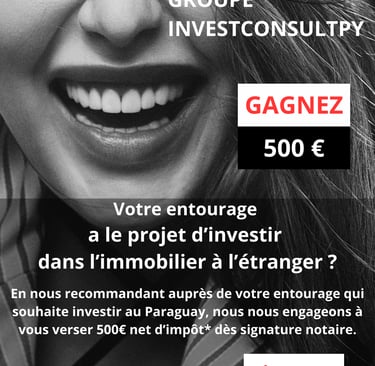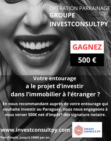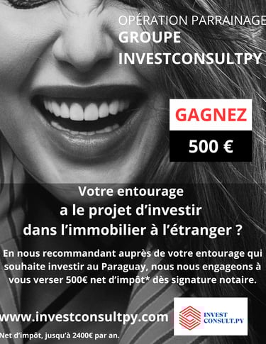 Pour devenir apporteur d'affaire, il vous suffit de recommander toute personne souhaitant investir dans l'immobilier, au Paraguay.